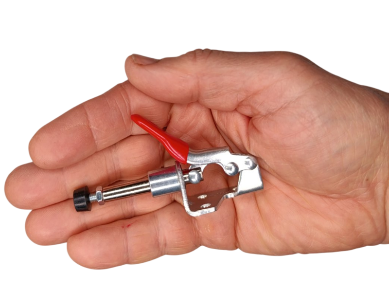 Главное достоинство этого прижима — колоссальная экономия времени при выполнении повторяющихся операций с небольшими деталями. Он решает задачу скорости и повторяемости лучше любого другого фиксатора.