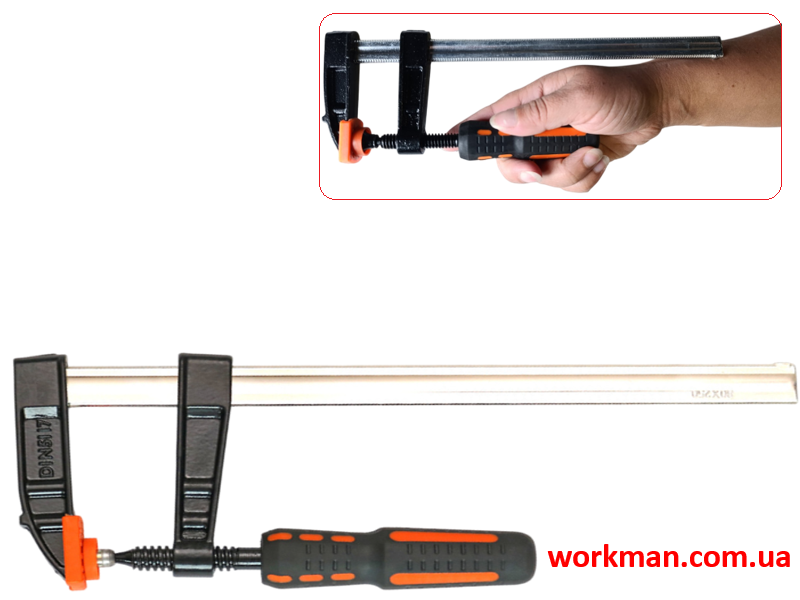 - Надежная конструкция Standard: Стальная шина с рифлением не дает подвижной губке скользить под нагрузкой. Винт с трапецеидальной резьбой равномерно и мощно стягивает детали, а удобная двухкомпонентная рукоятка позволяет комфортно работать в течение долгого времени без усталости в руке.