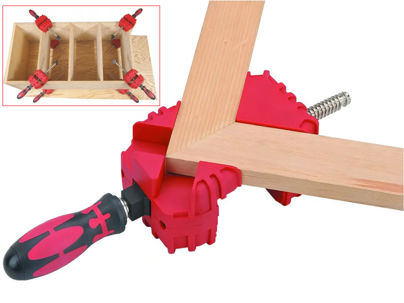 - Сборка мебельных ящиков: Идеальная фиксация боковин и фасада под прямым углом для склейки или сверления.