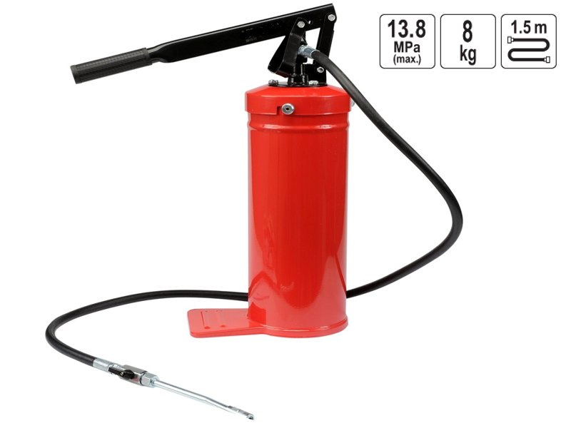 Когда объемы работ по смазке техники растут, а доступ к компрессору по-прежнему ограничен, необходим инструмент с увеличенным ресурсом автономной работы. Ручной нагнетатель смазки на 8 кг — это мощное и портативное решение, созданное для интенсивного использования. Он предлагает вдвое большую емкость по сравнению с младшими моделями, позволяя обслуживать больше техники без необходимости частой дозаправки, и при этом сохраняет полную независимость от внешних источников энергии.