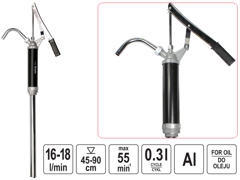 - Универсальная телескопическая трубка (45-90 см). Широкий диапазон регулировки длины заборной трубки делает этот насос по-настоящему универсальным. Вы можете идеально настроить его для работы с любыми стандартными емкостями, от невысоких 60-литровых бочек до глубоких 200-литровых, гарантируя забор жидкости с самого дна и минимизируя остатки.