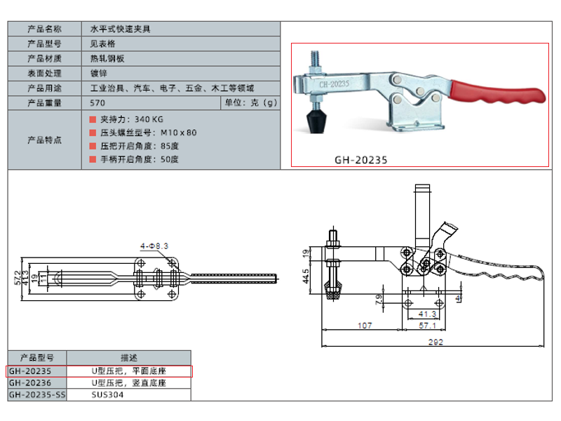 - Тип прижима: Горизонтальный, быстрозажимной (toggle clamp)