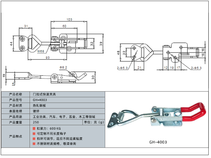 Коли для надійного з'єднання двох елементів звичайної засувки недостатньо, а потрібне потужне, швидке та гарантовано міцне стягування — до справи береться спеціалізоване оснащення. Важільний притиск WorkMan GH-4003 — це компактний, але надзвичайно потужний замок накидного типу, створений для однієї мети: створювати та утримувати величезне зусилля натягу. Його завдання — не просто притиснути деталь, а намертво стягнути дві площини, чи то кришка та корпус ящика, чи дві частини невеликої прес-форми, забезпечуючи абсолютну нерухомість та герметичність з'єднання.