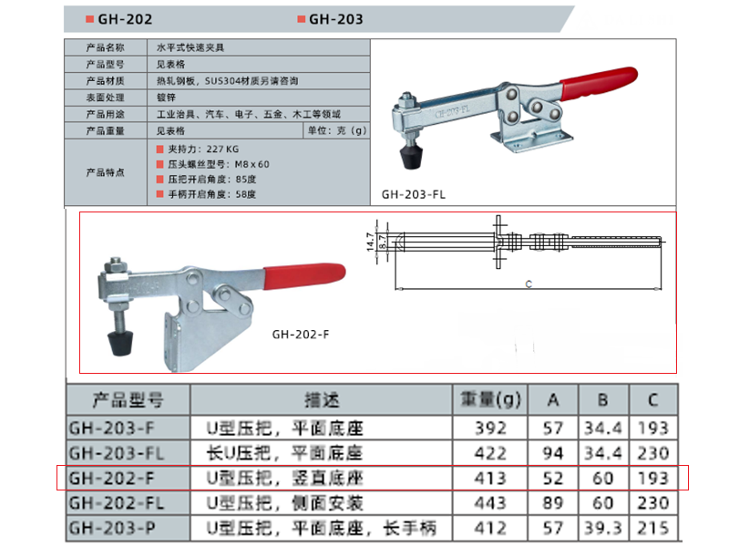 - Тип притискача: Горизонтальний, швидкозатискний (toggle clamp)