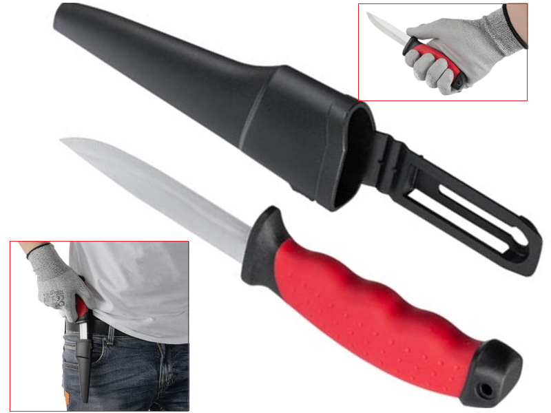 У роботі постійно потрібен ніж: відкрити упаковку, зачистити дріт, відрізати мотузку. Використовувати для цього складаний ніж не завжди зручно, особливо брудними чи мокрими руками. Цей універсальний ніж із фіксованим лезом — інженерне рішення для тих, кому інструмент потрібен "завжди під рукою". Це легкий, безпечний та неймовірно практичний робочий інструмент для будівництва, саду чи походу.
