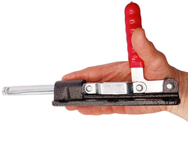 Мене звати Іштван Сабо. Коли в цеху потрібно швидко зібрати партію невеликих виробів, чи то зварювання або склеювання, швидкість фіксації вирішує все. Я часто використовую поршневі затискачі для своїх кондукторів. Цю модель GH-36080C я поставив на пристосування для свердління серії невеликих корпусних деталей. Завдання: швидко вставити деталь, зафіксувати її лінійним рухом і просвердлити. Цей притиск впорався ідеально. І мої відчуття від надійності фіксації підтвердилися на стенді: незважаючи на те, що ми говоримо про невеликі заготовки, зусилля утримання в 580 кг — це колосальний запас міцності. Він гарантує, що деталь не зрушиться ні на мікрон, навіть якщо свердло закусить. 80-міліметровий хід штока дозволяє повністю відвести поршень, щоб вільно витягти готову деталь і вставити нову, що критично важливо для серійної роботи. Ось пара професійних порад по роботі з цією моделлю: Порада №1 (Як він працює) — Це "штовхаючий" притиск. Коли ви піднімаєте червону рукоятку вгору, поршень висувається вперед на 80 мм і фіксує деталь. Опускаючи рукоятку, ви втягуєте поршень. Це ідеально для притискання заготовки до упору. Порада №2 (Точне налаштування) — Притискний гвинт M8 на кінці поршня дозволяє ідеально "підігнати" затискач під висоту вашої заготовки. Встановіть притиск, підведіть поршень і відрегулюйте гвинт до легкого торкання, потім зафіксуйте його контргайками. Порада №3 (Монтаж) — Масивна основа з шістьма отворами дає вам свободу вибору. Використовуйте всі шість для максимальної жорсткості на зварювальному столі або чотири, якщо ви кріпите його на столярний верстак. Мій вердикт: це чудовий силовий "солдат" для будь-якого складального або зварювального кондуктора, що працює з дрібними та середніми деталями. Його сила не в "промисловому" масштабі, а в абсолютній надійності фіксації та швидкості роботи. Цей екземпляр пройшов мою особисту перевірку, і я проконтролюю, щоб до вас відправився ідеально змащений і повністю готовий до роботи затискач.
