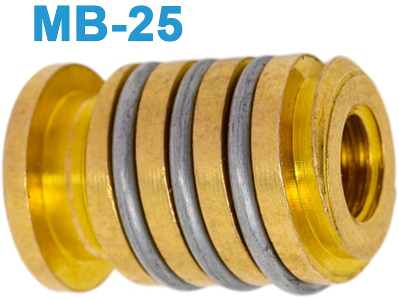 - Інтегрована сталева пружина. Це "ноу-хау" пальників MB-25. Пружина створює щільну фрикційну посадку для газового сопла. Це дозволяє міняти сопло голими руками (просто стягнути та надіти), без різьби. Пружина надійно утримує сопло, не даючи йому вібрувати чи зміщуватися під час роботи.